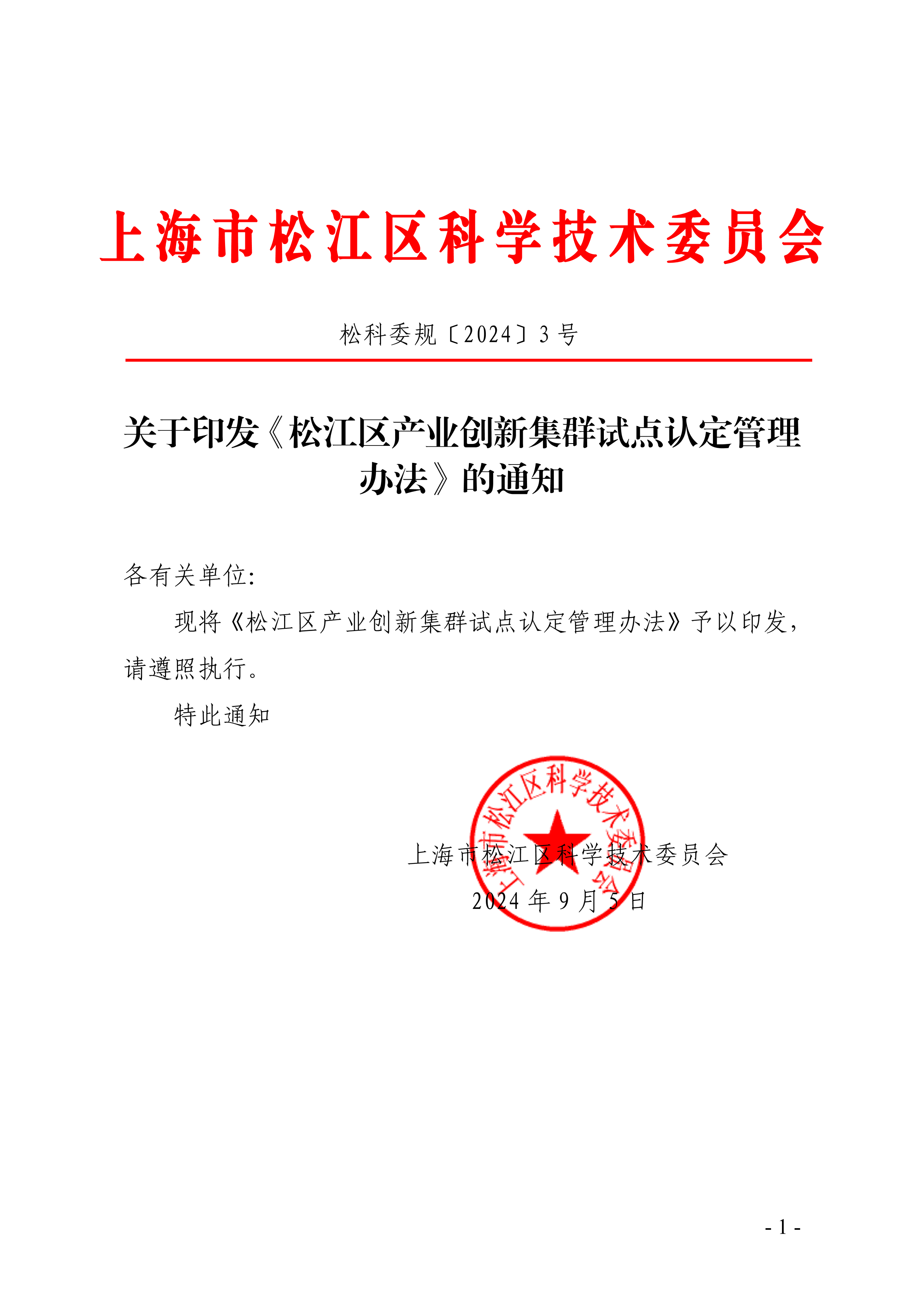 关于印发《松江区产业创新集群试点认定管理办法》的通知