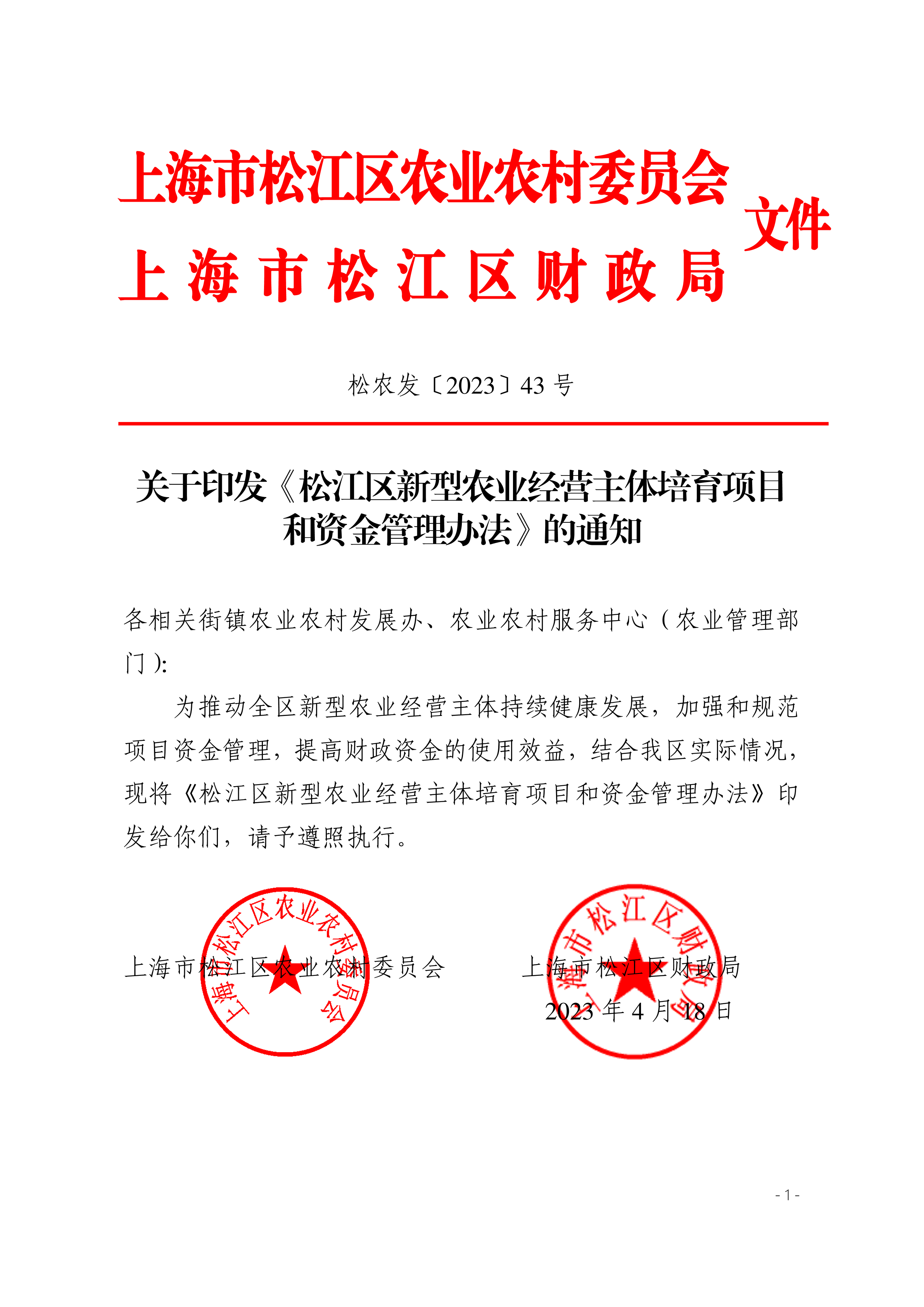 关于印发《松江区新型农业经营主体培育项目和资金管理办法》的通知
