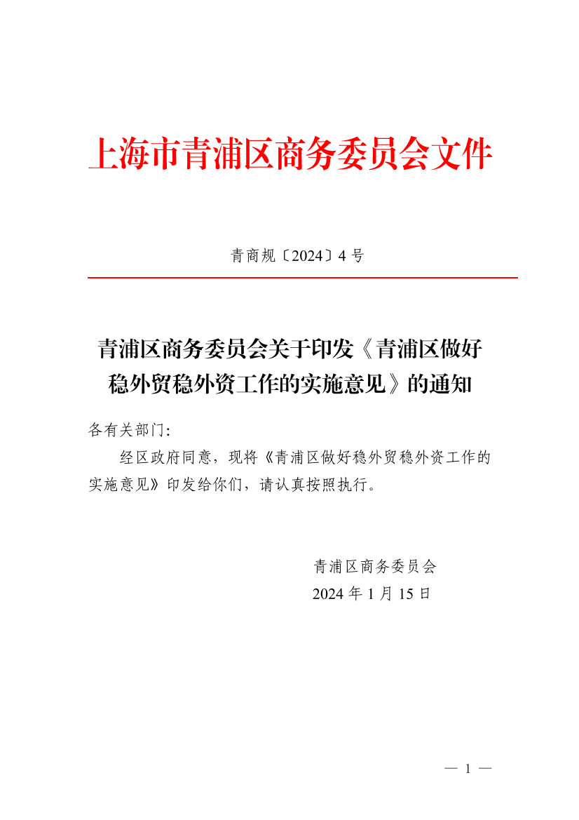 经区政府同意,现将《青浦区做好稳外贸稳外资工作的实施意见》印发给你们,请认真按照执行。