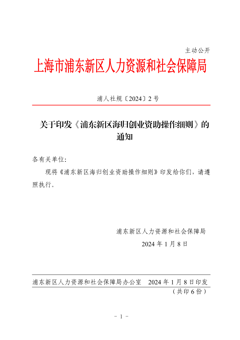 关于印发《浦东新区海归创业资助操作细则》的通知