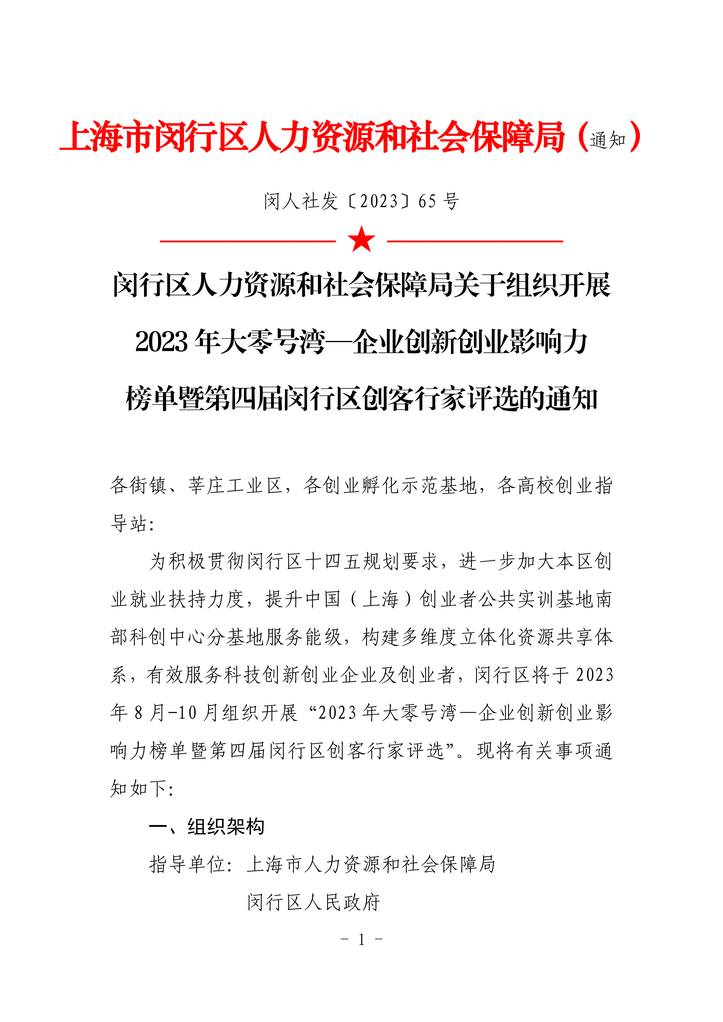 关于组织开展2023年大零号湾—企业创新创业影响力榜单暨第四届闵行区创客行家评选的通知
