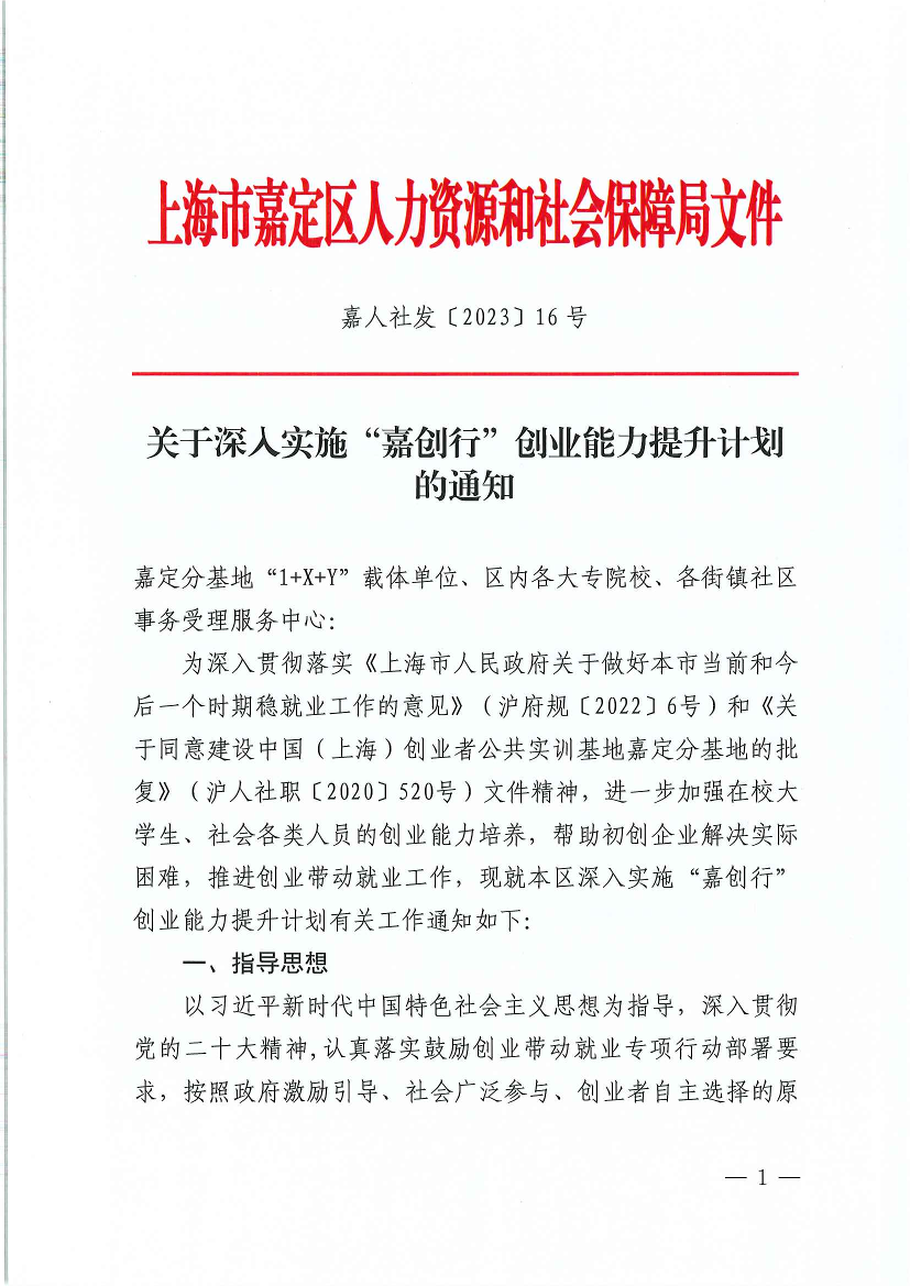 为深入贯彻落实《上海市人民政府关于做好本市当前和今后一个时期稳就业工作的意见》(沪府规〔2022〕6号)和《关于同意建设中国(上海)创业者公共实训基地嘉定分基地的批复》(沪人社职〔2020〕520号)文件精神,进一步加强在校大学生、社会各类人员的创业能力培养,帮助初创企业解决实际困难,推进创业带动就业工作,现就本区深入实施“嘉创行”创业能力提升计划有关工作通知如下: