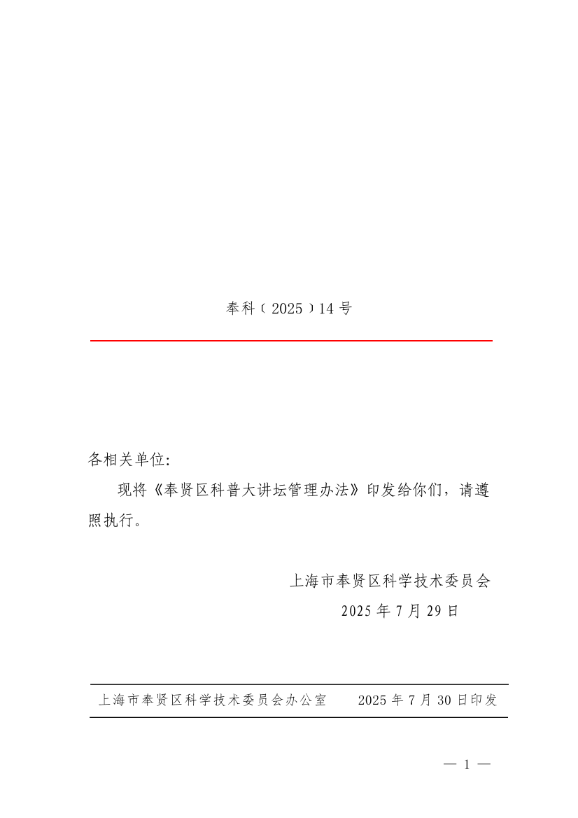 奉贤区科普大讲坛管理办法