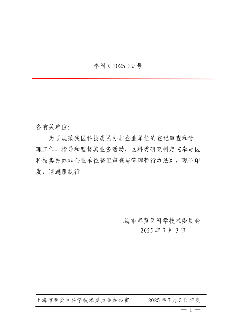 奉贤区科技类民办非企业单位登记审查与管理暂行办法