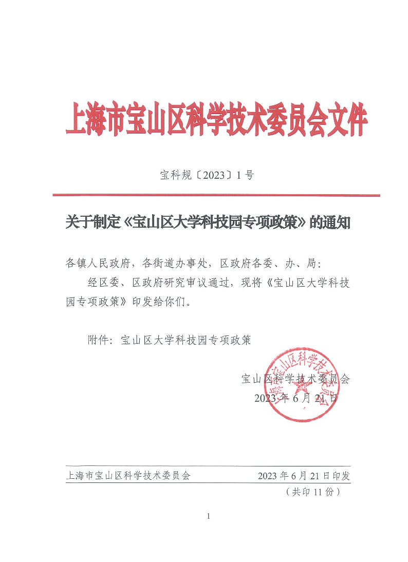 经区委、区政府研究审议通过,现将《宝山区大学科技园专项政策》印发给你们。