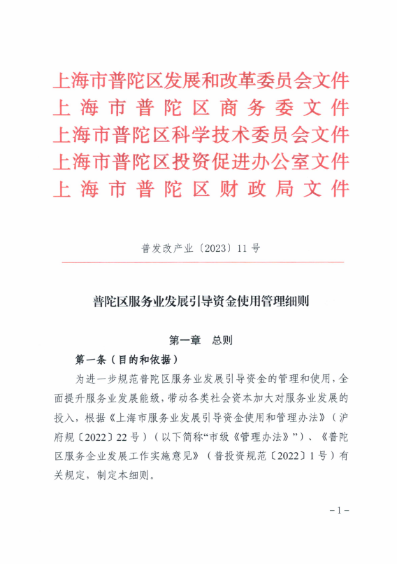 为进一步规范普陀区服务业发展引导资金的管理和使用,全面提升服务业发展能级,带动各类社会资本加大对服务业发展的投入,根据《上海市服务业发展引导资金使用和管理办法》(沪府规〔2022〕22号)(以下简称“市级《管理办法》”)、《普陀区服务企业发展工作实施意见》(普投资规范〔2022〕1号)有关规定,制定本细则。