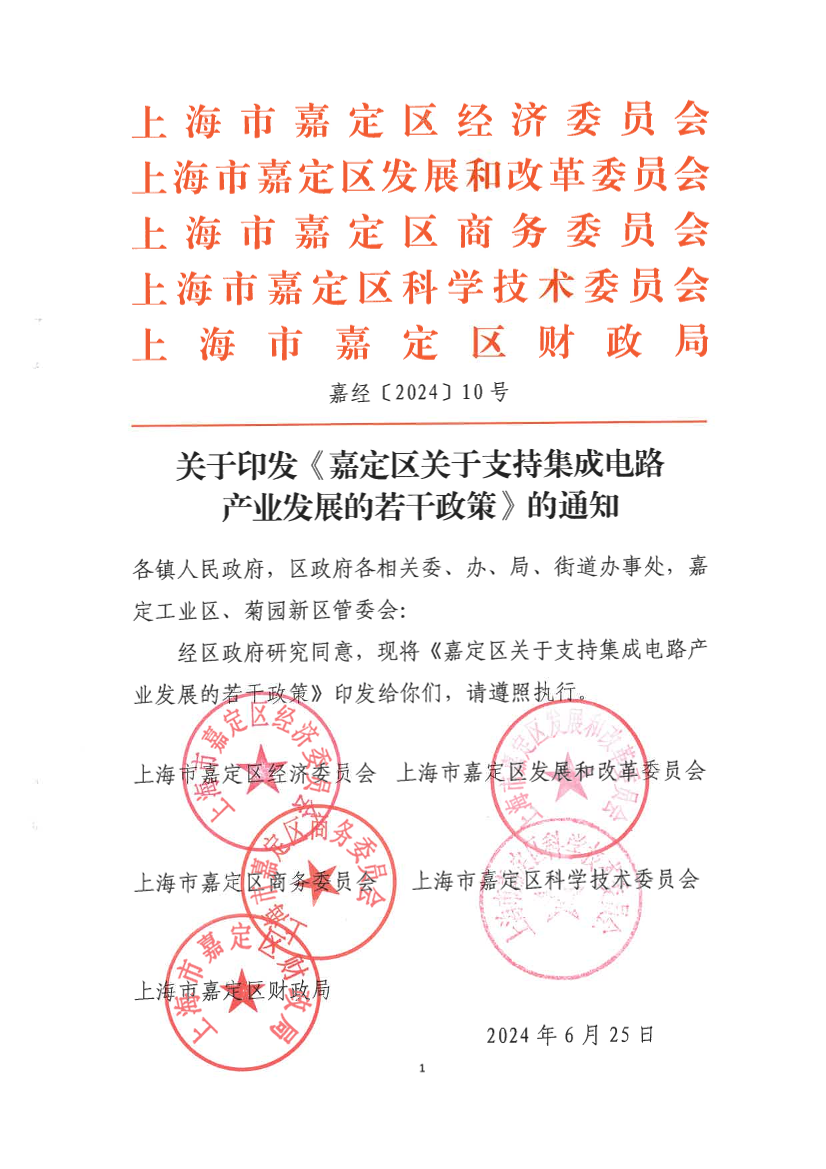 经区政府研究同意,现将《嘉定区关于支持集成电路产业发展的若干政策》印发给你们,请遵照执行。