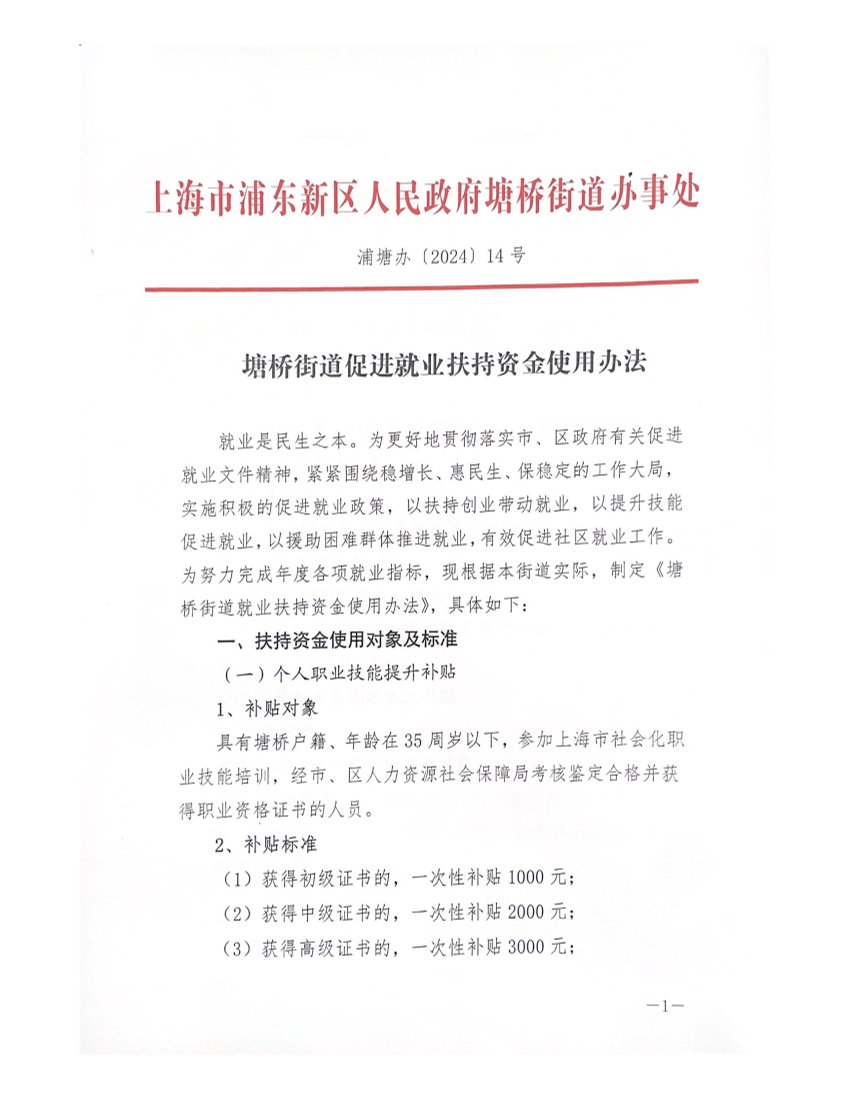 塘桥街道促进就业扶持资金使用办法