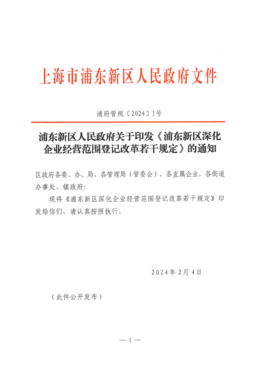 浦东新区人民政府关于印发《浦东新区深化企业经营范围登记改革若干规定》的通知