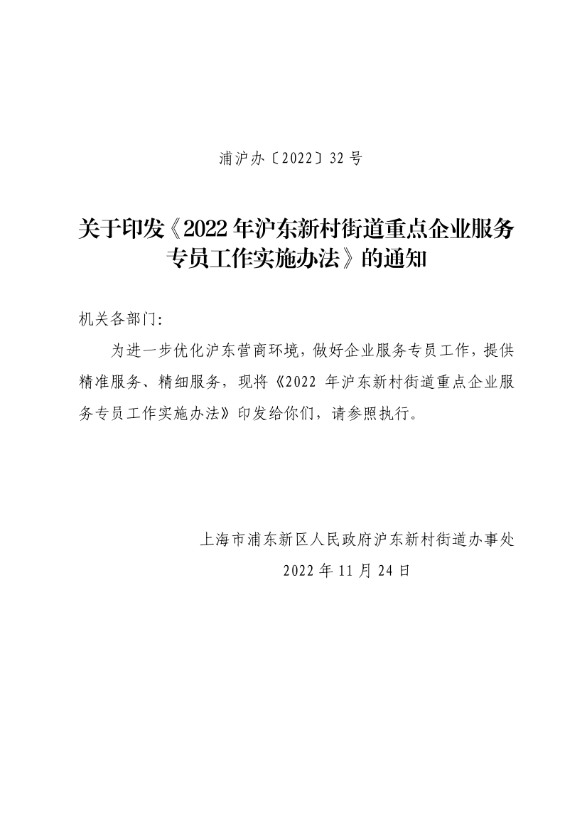 2022年沪东新村街道重点企业服务专员工作实施办法