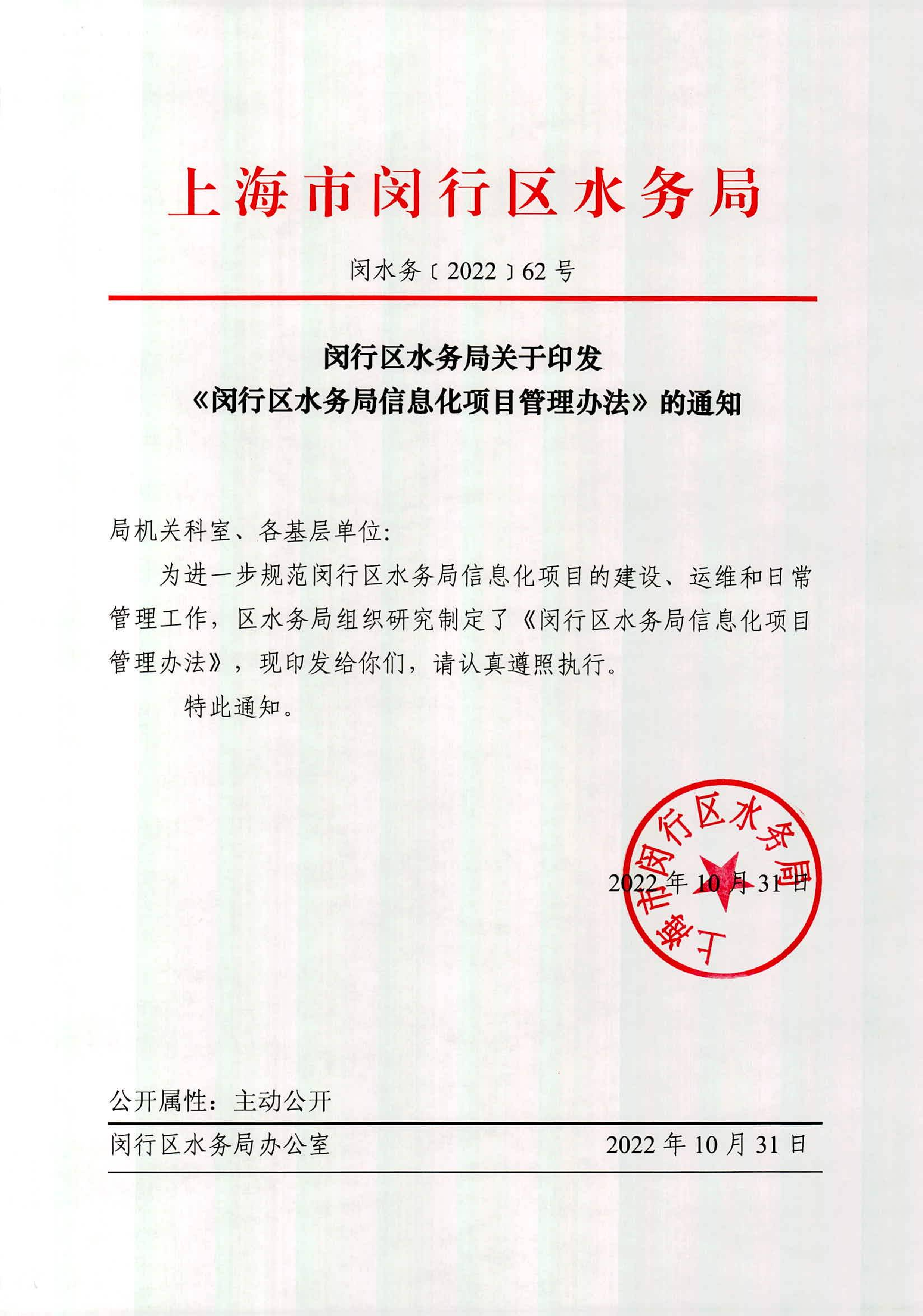 闵行区水务局关于印发《闵行区水务局信息化项目管理办法》的通知