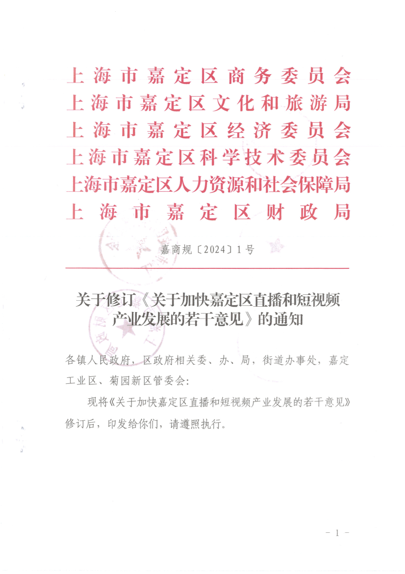 关于修订《关于加快嘉定区直播和短视频产业发展的若干意见》的通知