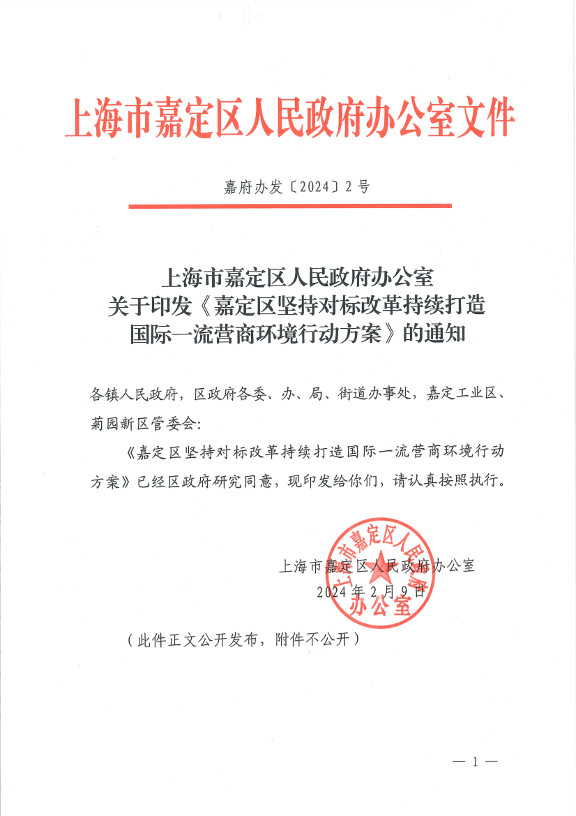 嘉定区坚持对标改革持续打造国际一流营商环境行动方案
