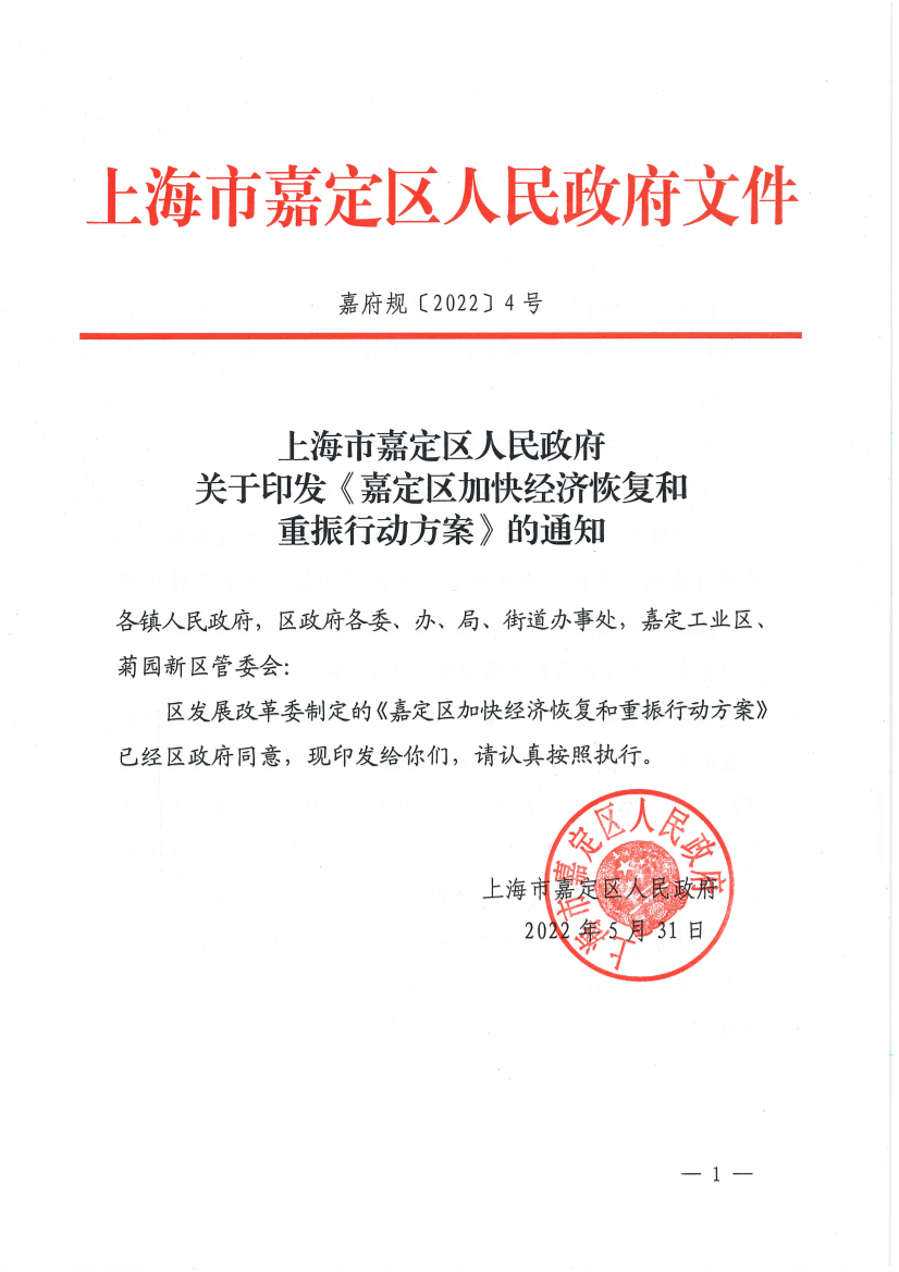 关于印发《嘉定区加快经济恢复和重振行动方案》的通知