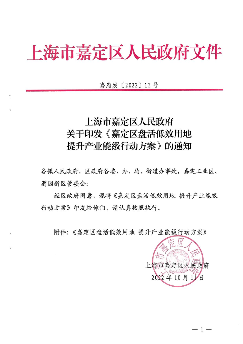 附件:《嘉定区盘活低效用地 提升产业能级行动方案》
