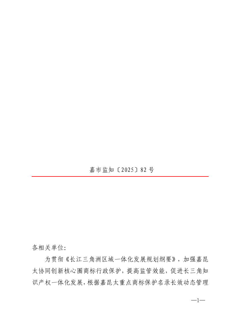 为贯彻《长江三角洲区域一体化发展规划纲要》,加强嘉昆太协同创新核心圈商标行政保护,提高监管效能,促进长三角知识产权一体化发展,根据嘉昆太重点商标保护名录长效动态管理机制,上海市嘉定区市场监督管理局、昆山市市场监督管理局、太仓市市场监督管理局决定发布新一批嘉昆太协同创新核心圈《重点商标保护名录》,共同对区域内享有较高知名度、具有较大市场影响力、容易被侵权假冒、确需加强保护的商标进行管理,加大对侵犯重点商标专用权行为的打击力度,全力营造良好的知识产权保护环境。