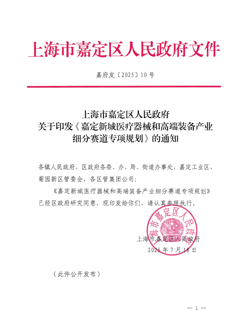 文字解读:《嘉定新城医疗器械和高端装备产业细分赛道专项规划》