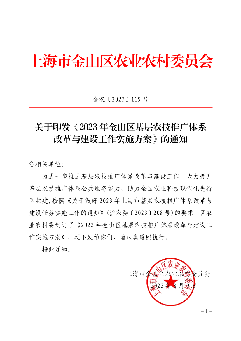 关于印发《2023年金山区基层农技推广体系改革与建设工作实施方案》的通知