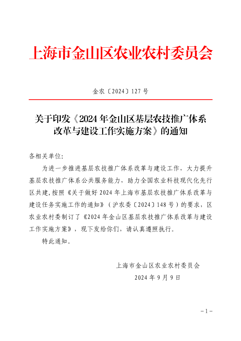 2024年金山区基层农技推广体系改革与建设工作实施方案