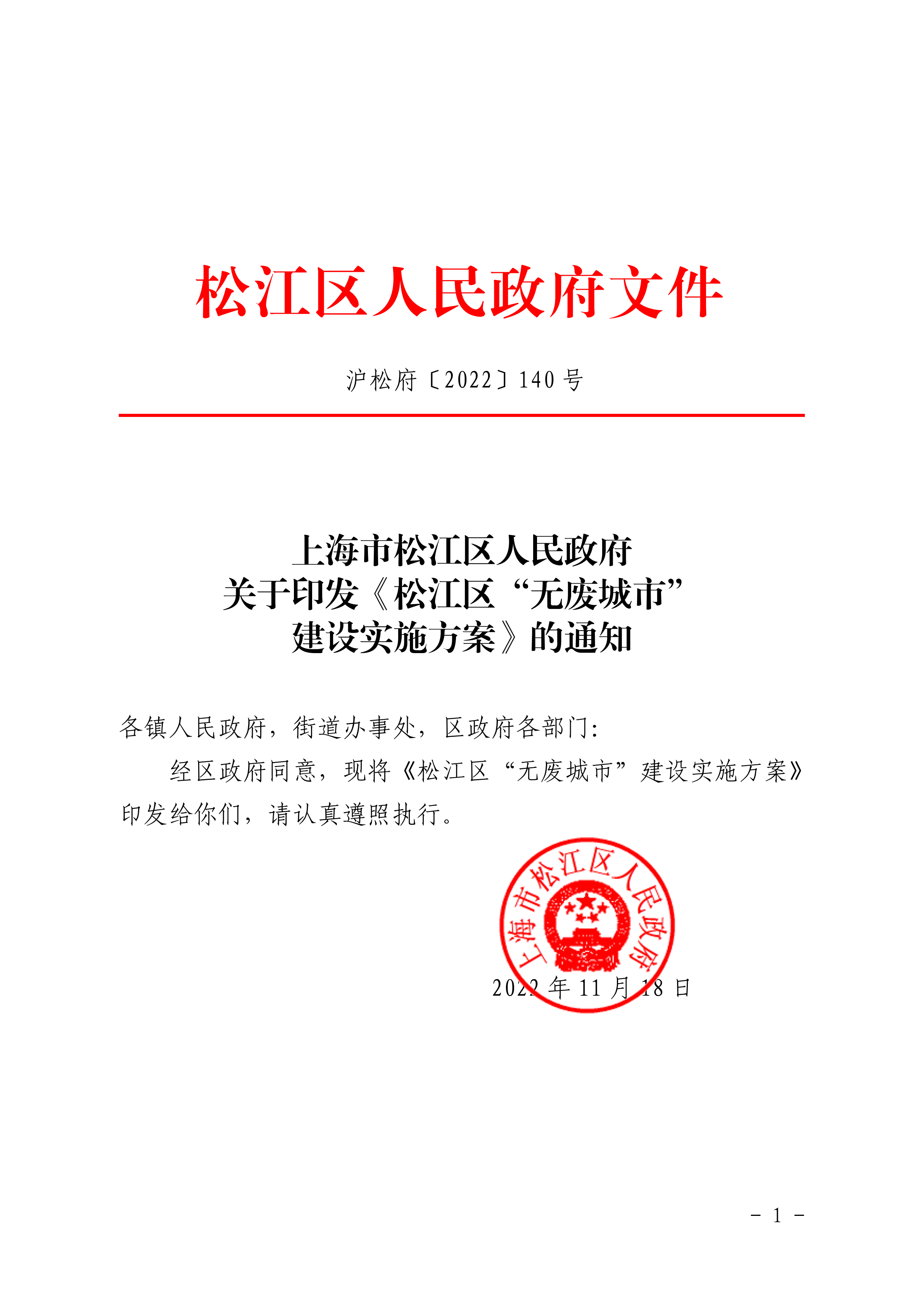 上海市松江区人民政府关于印发《松江区“无废城市”建设实施方案》的通知