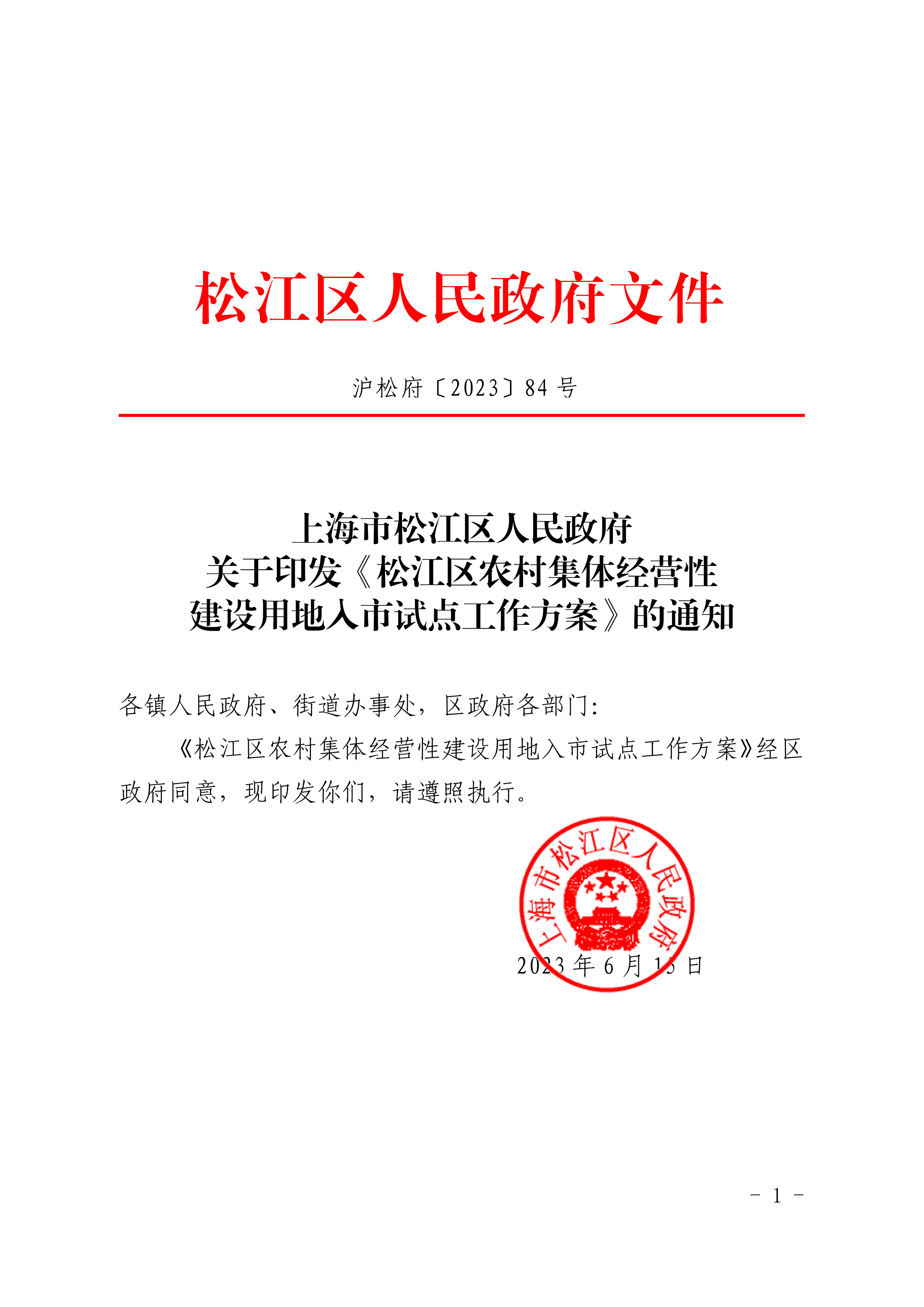 关于印发《松江区农村集体经营性建设用地入市试点工作方案》的通知
