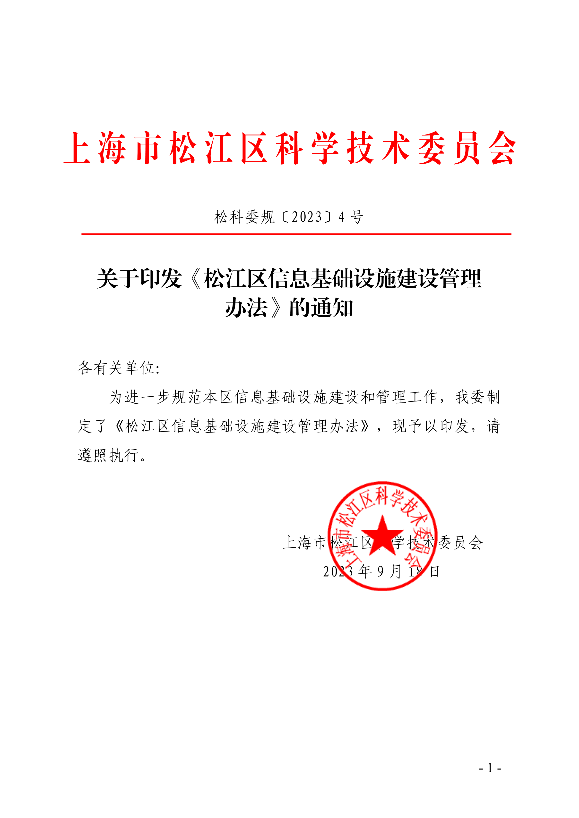关于印发《松江区信息基础设施建设管理办法》的通知