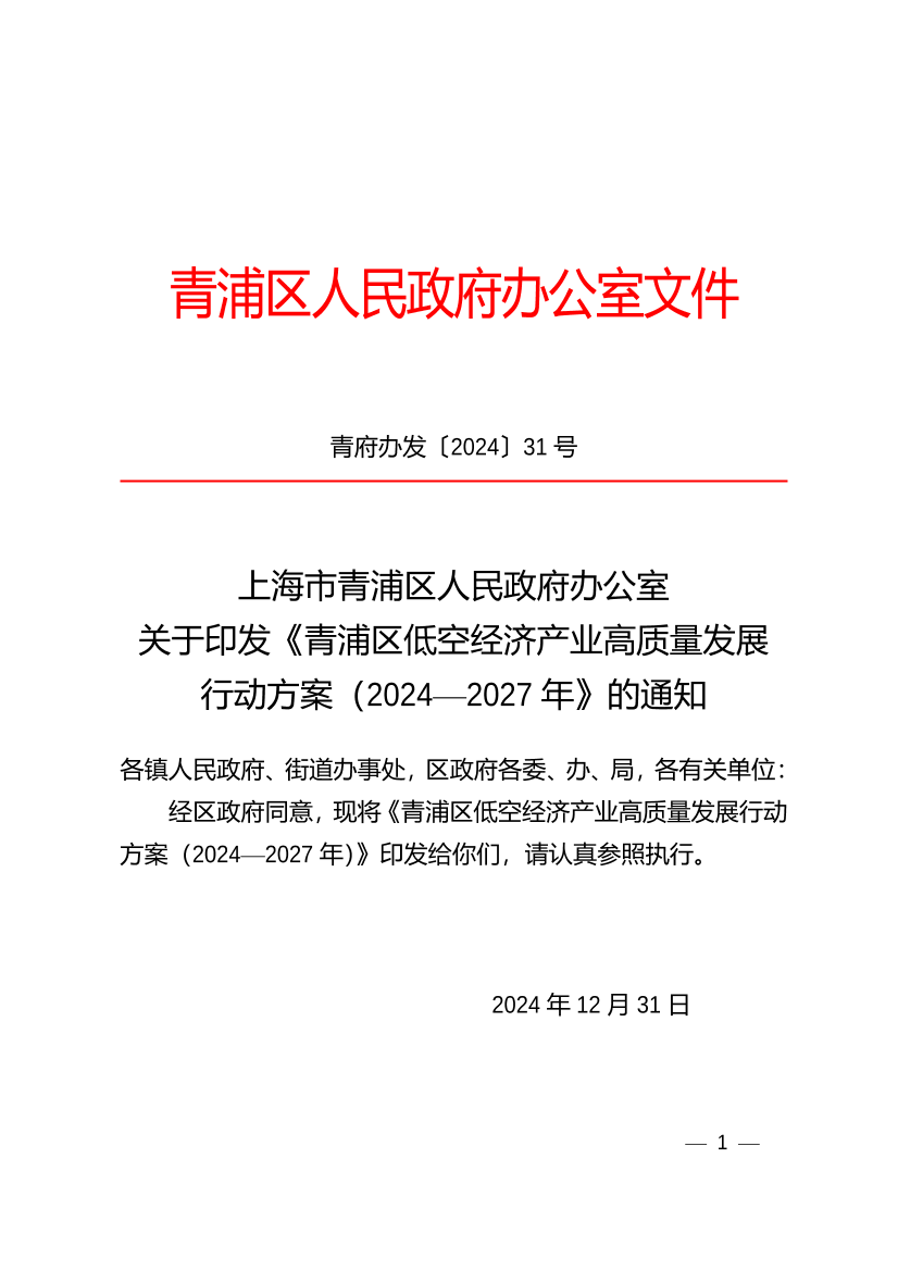 经区政府同意,现将《青浦区低空经济产业高质量发展行动方案(2024—2027年)》印发给你们,请认真参照执行。