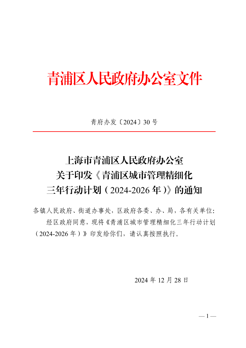 青浦区城市管理精细化三年行动计划(2024-2026年)