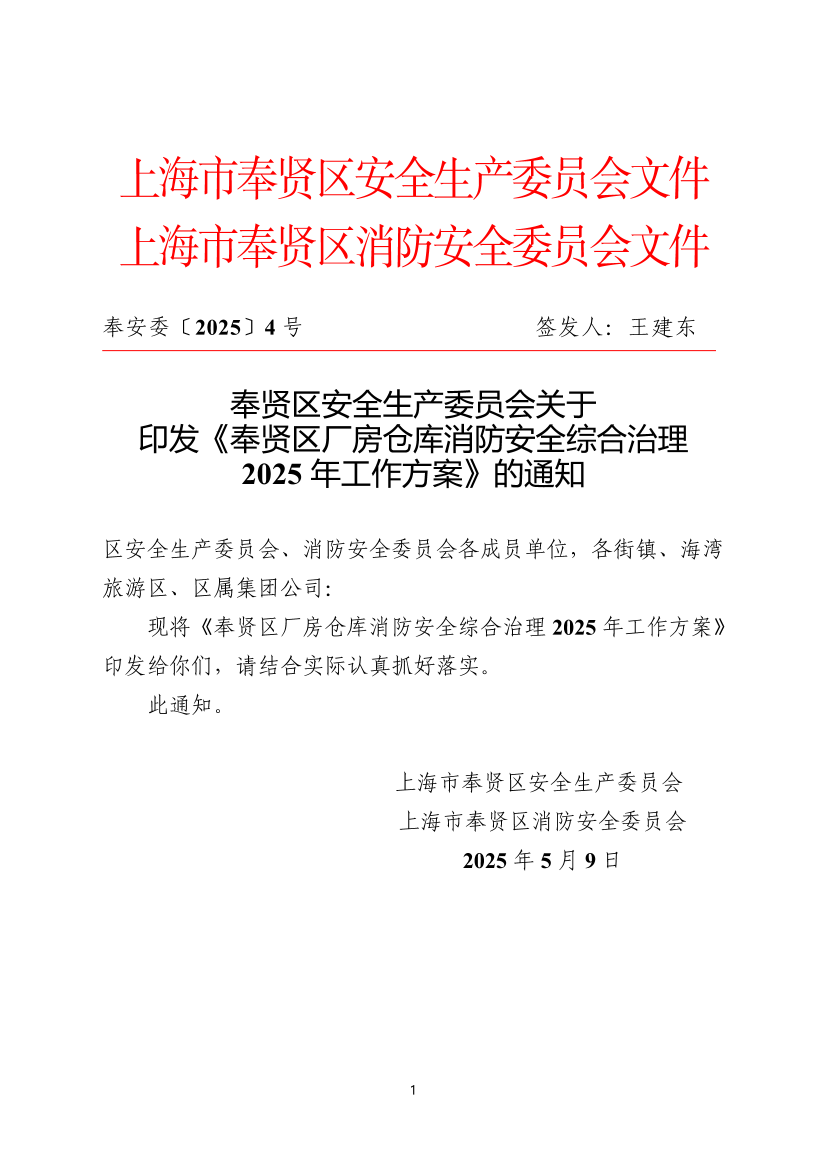 现将《奉贤区厂房仓库消防安全综合治理2025年工作方案》印发给你们,请结合实际认真抓好落实。