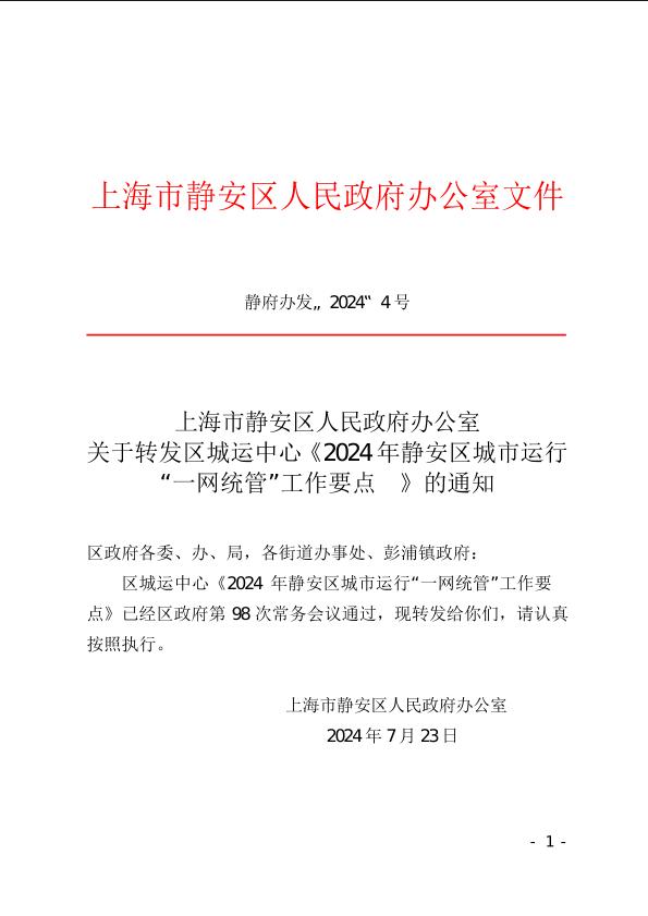 关于转发区城运中心《2024年静安区城市运行“一网统管”工作要点》的通知