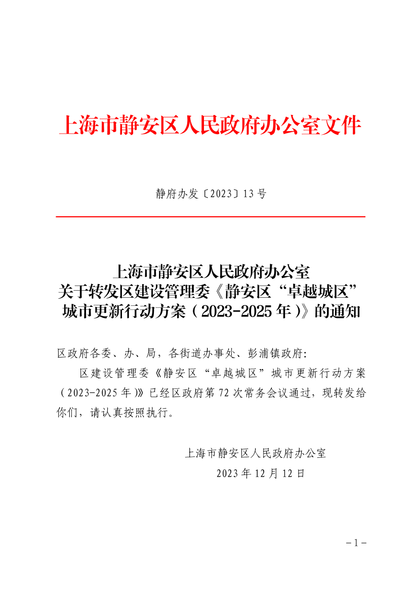 关于转发区建设管理委《静安区“卓越城区”城市更新行动方案(2023-2025年)》的通知