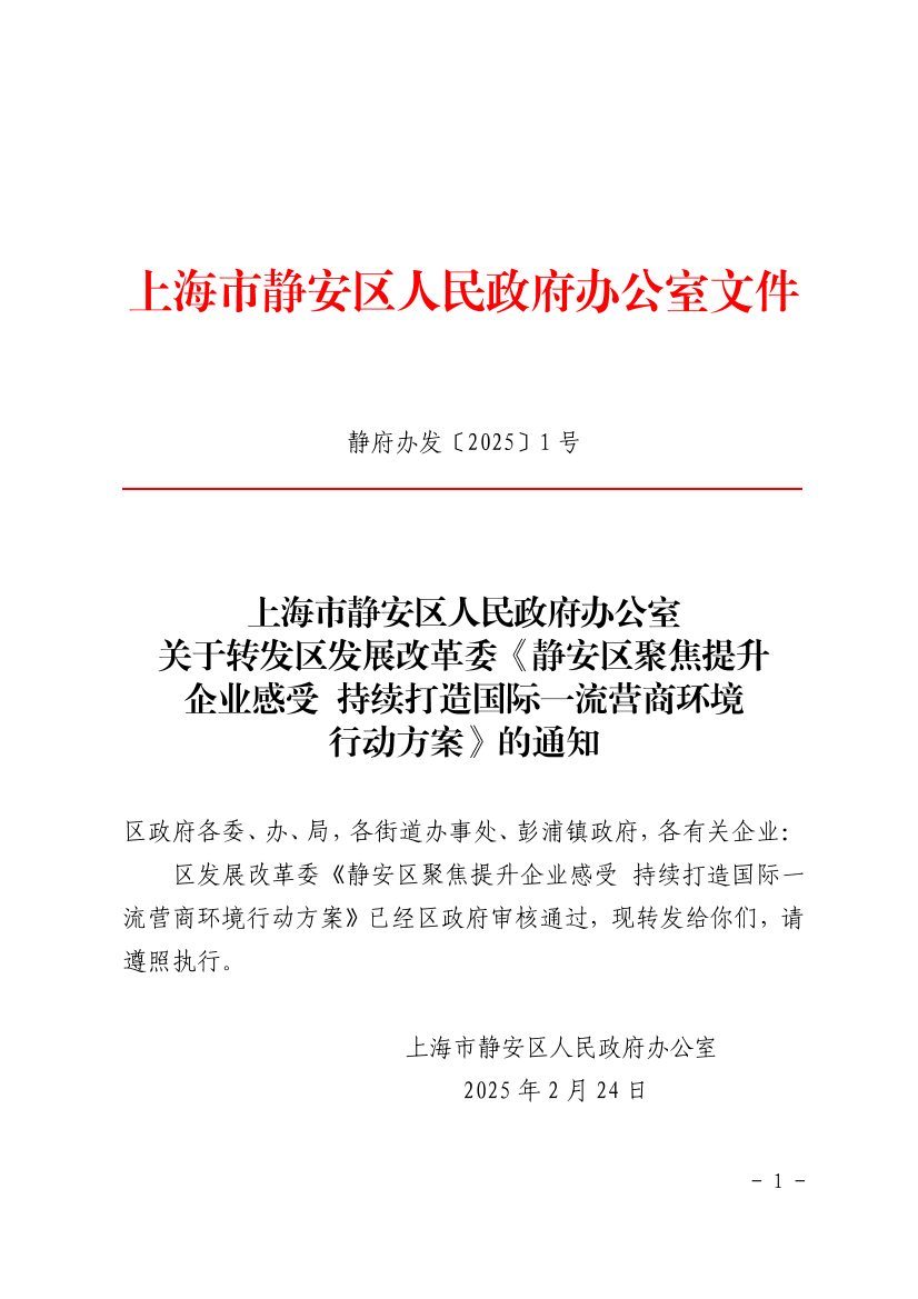 静安区聚焦提升企业感受持续打造国际一流营商环境行动方案