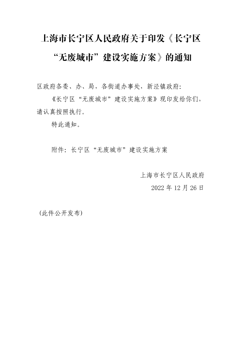 《长宁区“无废城市”建设实施方案》现印发给你们,请认真按照执行。