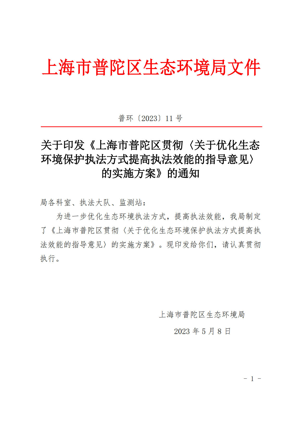 上海市普陀区贯彻《关于优化生态环境保护执法方式提高执法效能的指导意见》的实施方案