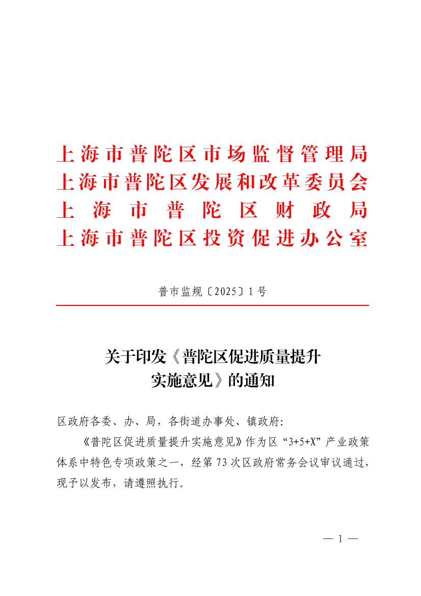 (三)本意见自2025年4月21日起施行,有效期至2026年12月31日。《普陀区促进质量提升实施意见》(普市监规〔2024〕1号)同时废止。