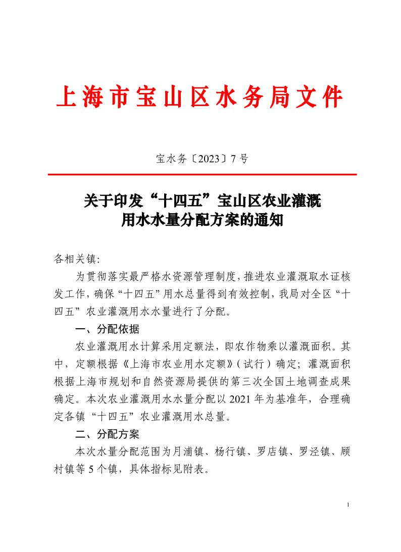 本次水量分配范围为月浦镇、杨行镇、罗店镇、罗泾镇、顾村镇等5个镇,具体指标见附表。