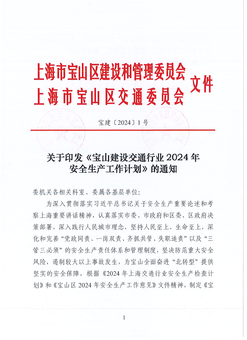 关于印发《宝山建设交通行业2024年安全生产工作计划》的通知