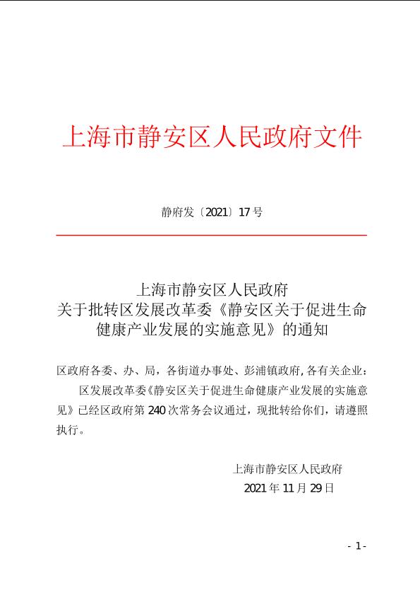 静安区关于促进生命健康产业发展的实施意见