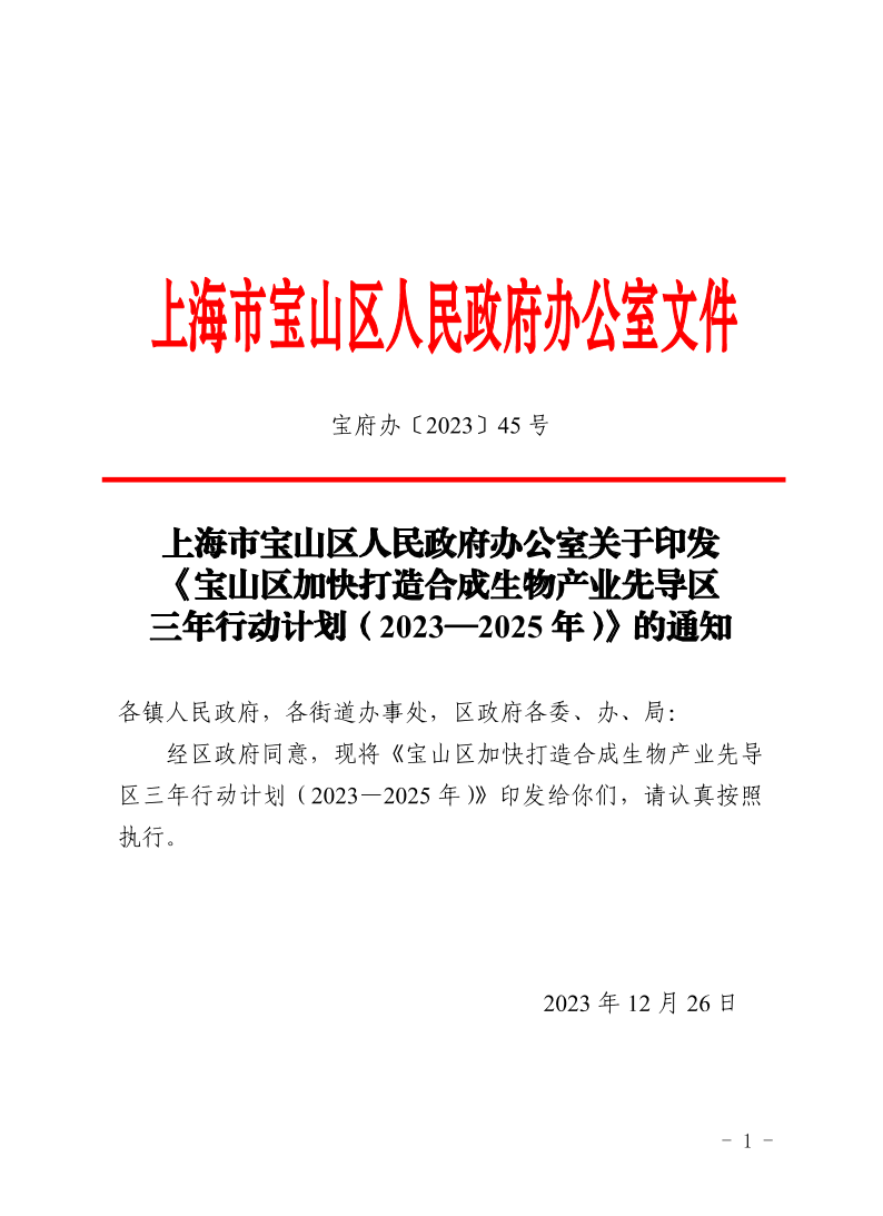 宝山区加快打造合成生物产业先导区三年行动计划(2023—2025年)