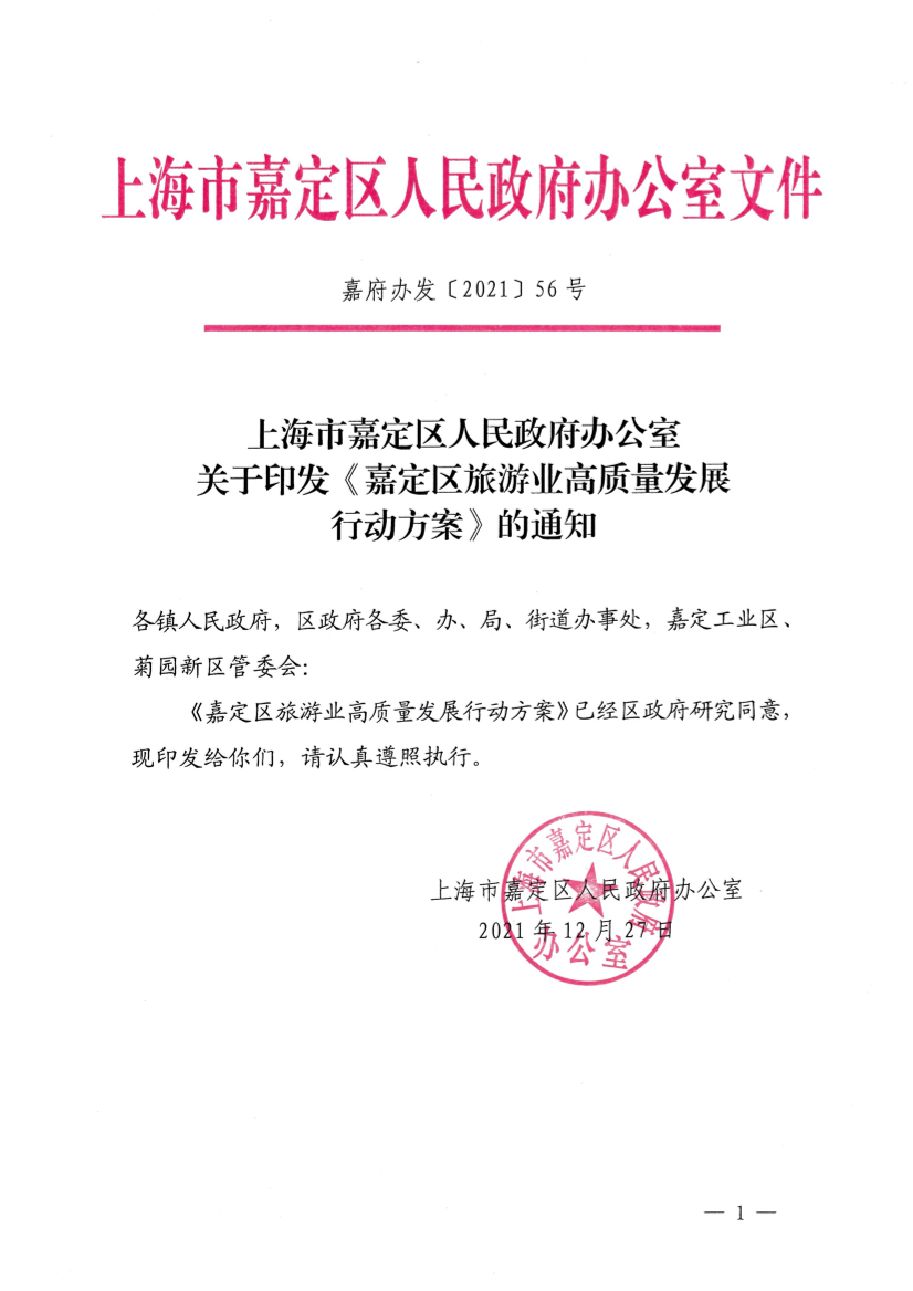 关于印发《嘉定区旅游业高质量发展行动方案》的通知