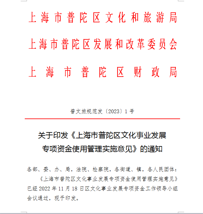 附件:上海市普陀区文化事业发展专项资金使用管理实施意见