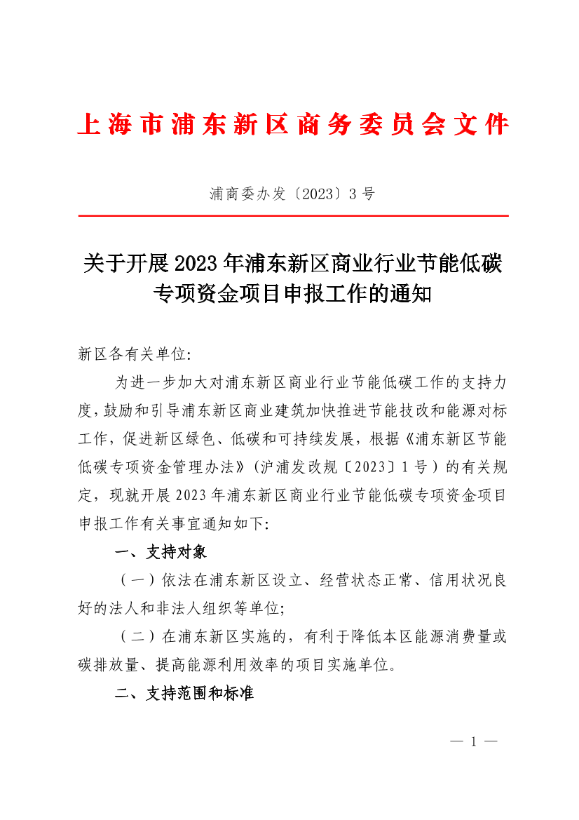 关于开展2023年浦东新区商业行业节能低碳专项资金项目申报工作的通知