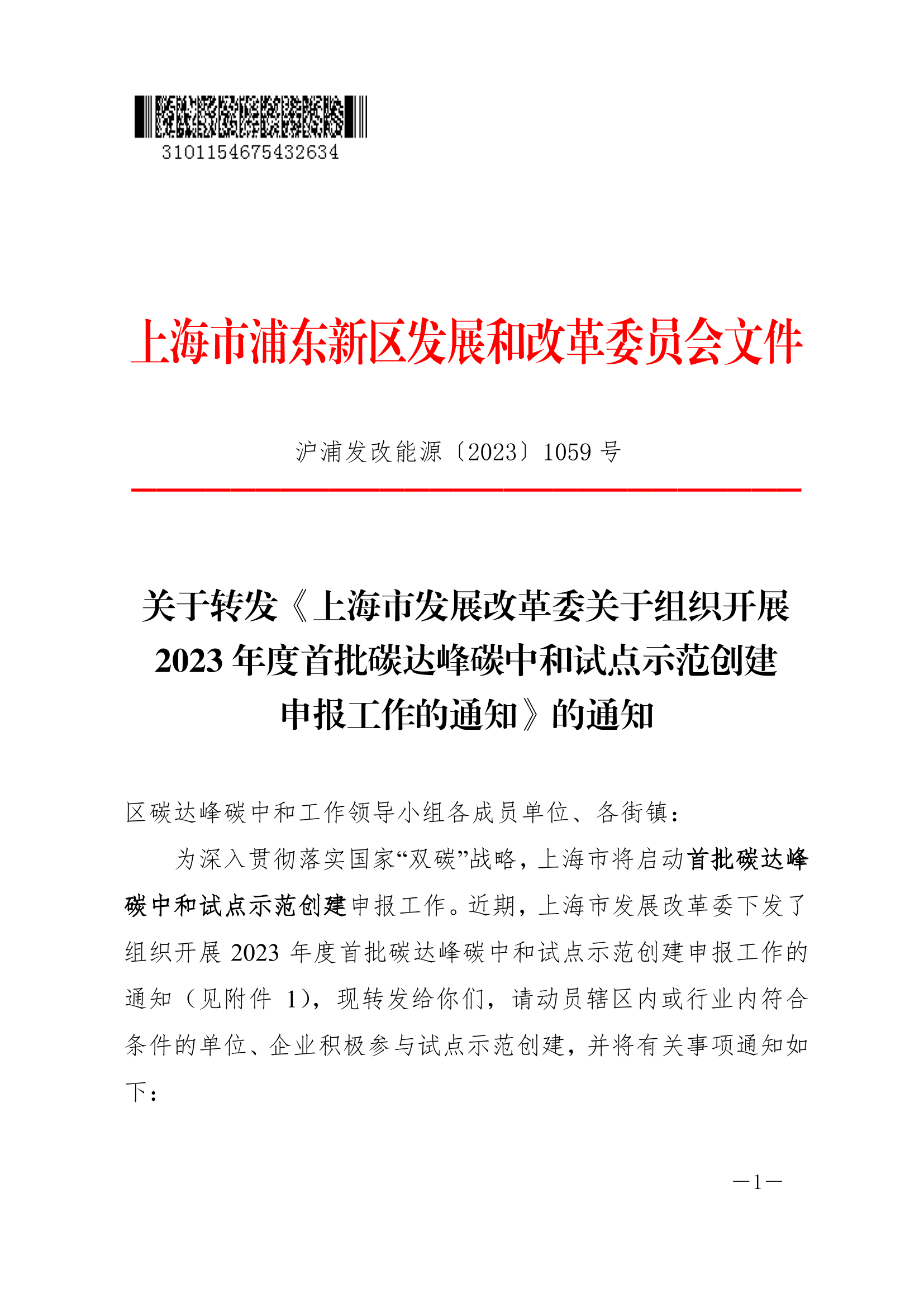 1. 上海市发展改革委关于组织开展2023年度首批碳达峰碳中和试点示范创建申报工作的通知(沪发改环资﹝2023﹞137号)
