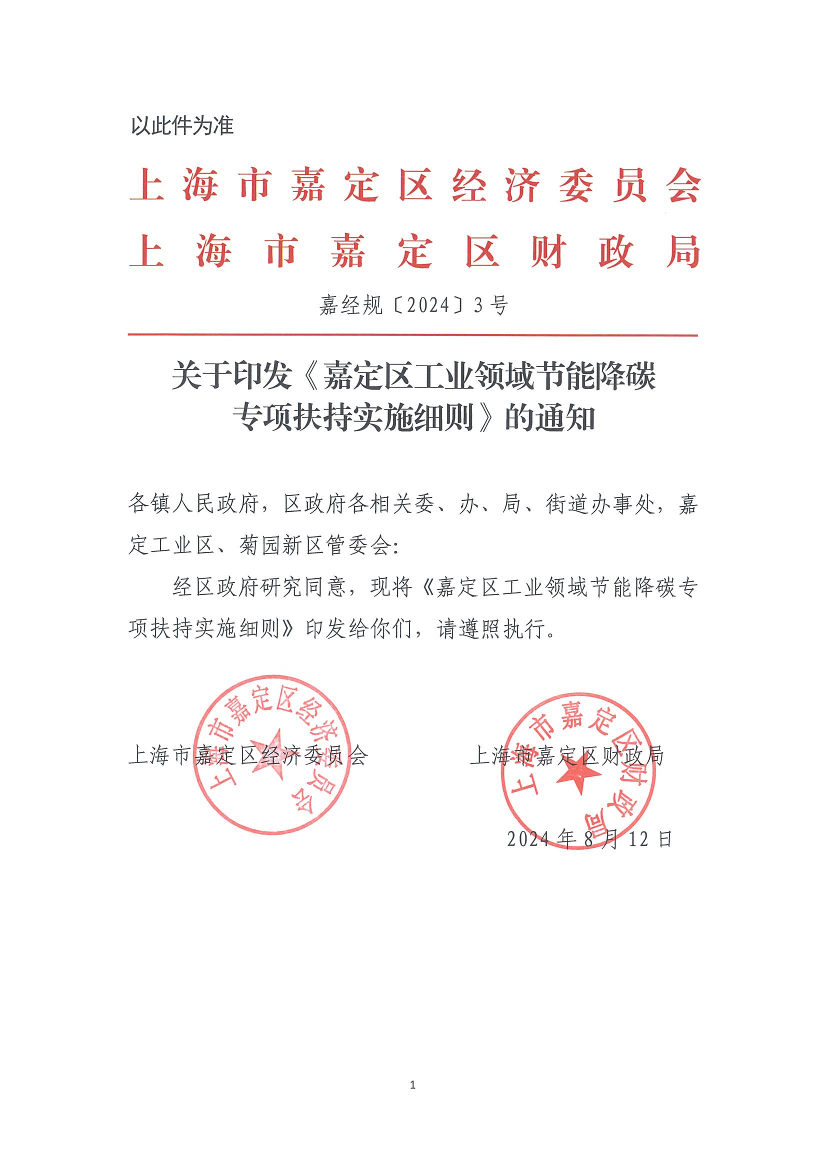 为深入贯彻绿色低碳发展理念,建立和完善绿色制造体系,引导和鼓励企业加大技术投入,促进本区工业领域绿色低碳高质量发展,加快实现碳达峰碳中和目标,根据《上海市工业通信业节能减排和合同能源管理专项扶持办法》《嘉定区碳达峰实施方案》《嘉定区节能减排(应对气候变化)专项资金管理办法》等文件精神,特制定本实施细则。