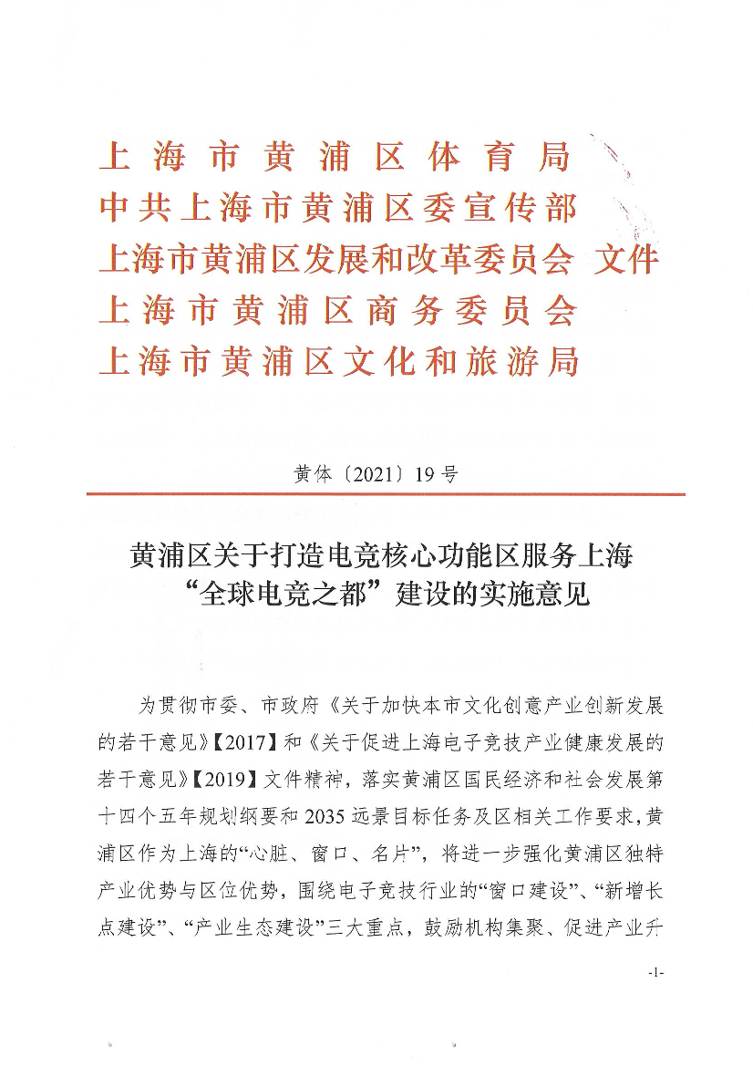 政策解读:【一图读懂】黄浦区关于打造电竞核心功能区服务上海“全球电竞之都”建设的实施意见:https://www.shhuangpu.gov.cn/zw/009001/009001016/009001016002/009001016002002/20211108/ab8507d4-5704-4808-af9c-0414d4bdbd7a.html