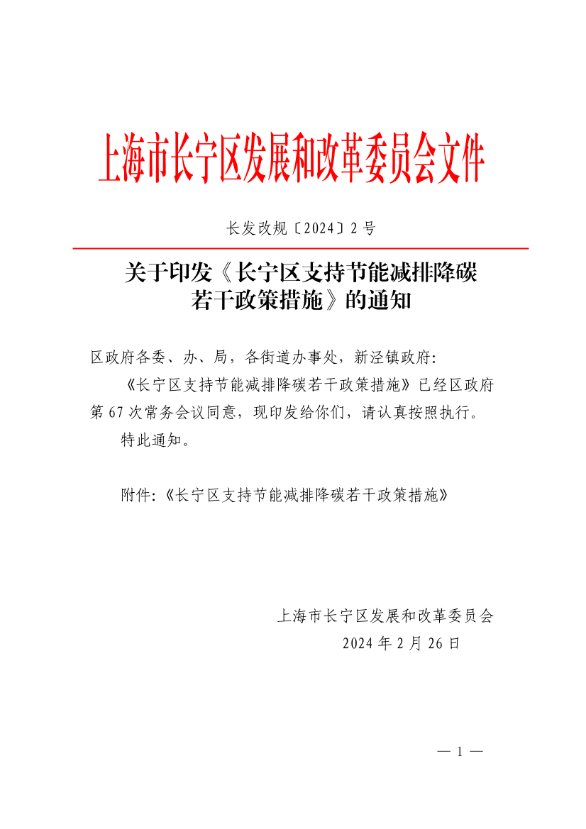 附件:《长宁区支持节能减排降碳若干政策措施》