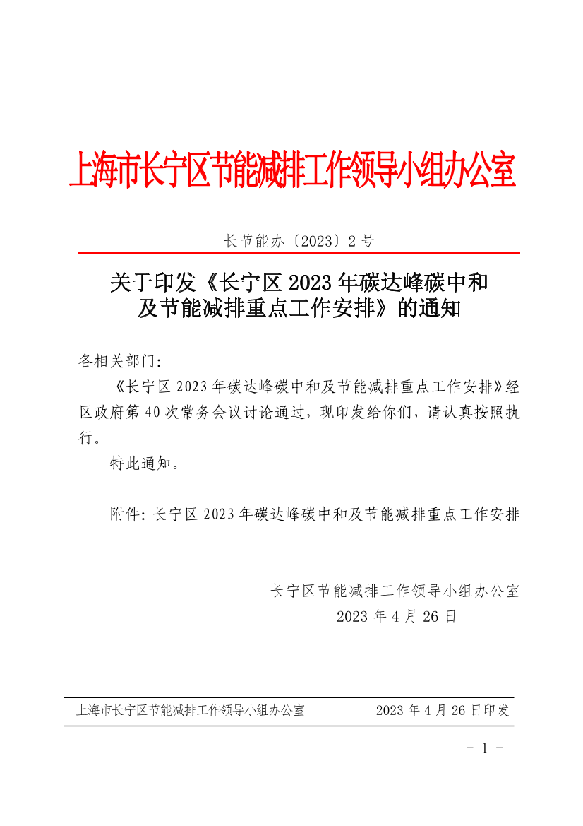 关于印发《长宁区2023年碳达峰碳中和及节能减排重点工作安排》的通知