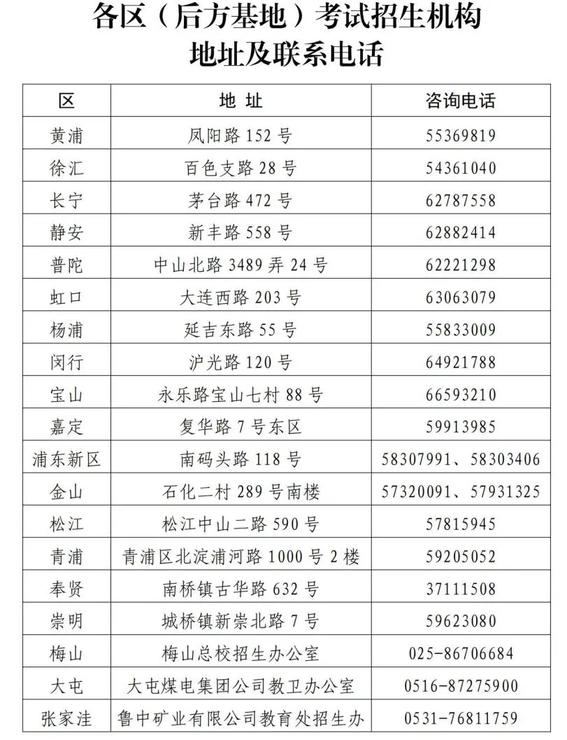 报名期间,请考生密切关注上海市教育考试院“上海招考热线”网站(www.shmeea.edu.cn)及“上海市教育考试院”微信公众号发布的相关信息;考生如有疑问,也可拨打上海市教育考试院咨询电话:35367070、962066(周一至周五,每日上午9:00-11:00、下午1:30-4:00)进行咨询,各区考试招生机构和考生所在学校也会为考生提供相关咨询帮助;考生也可点击报名页面下方的QQ图标进行线上咨询。