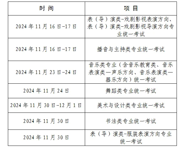 2025年艺术类专业统一考试报名与高考报名同时在网上进行,考前由考生自行下载打印准考证。考试时间安排如下: