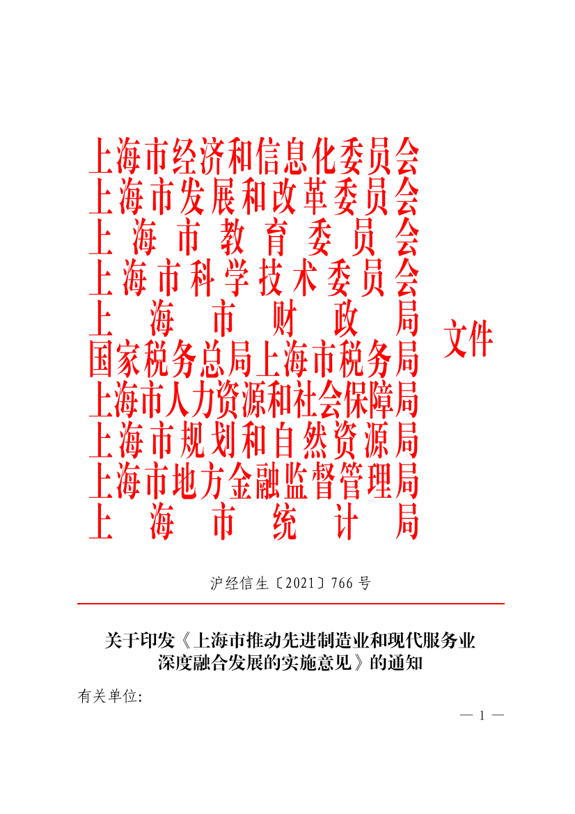 为贯彻落实《关于推动先进制造业和现代服务业深度融合发展的实施意见》(发改产业〔2019〕1762号)、《关于加快推动制造服务业高质量发展的意见》(发改产业〔2021〕372号)的精神,加快实现产业体系由“制造”向“创造”跃升,由“壮大”向“强大”迈进,加快形成支撑上海“五型经济”发展的重要基点和全新优势,打造全国产业高质量发展标杆,现将《上海市推动先进制造业和现代服务业深度融合发展的实施意见》印发,请按照执行。